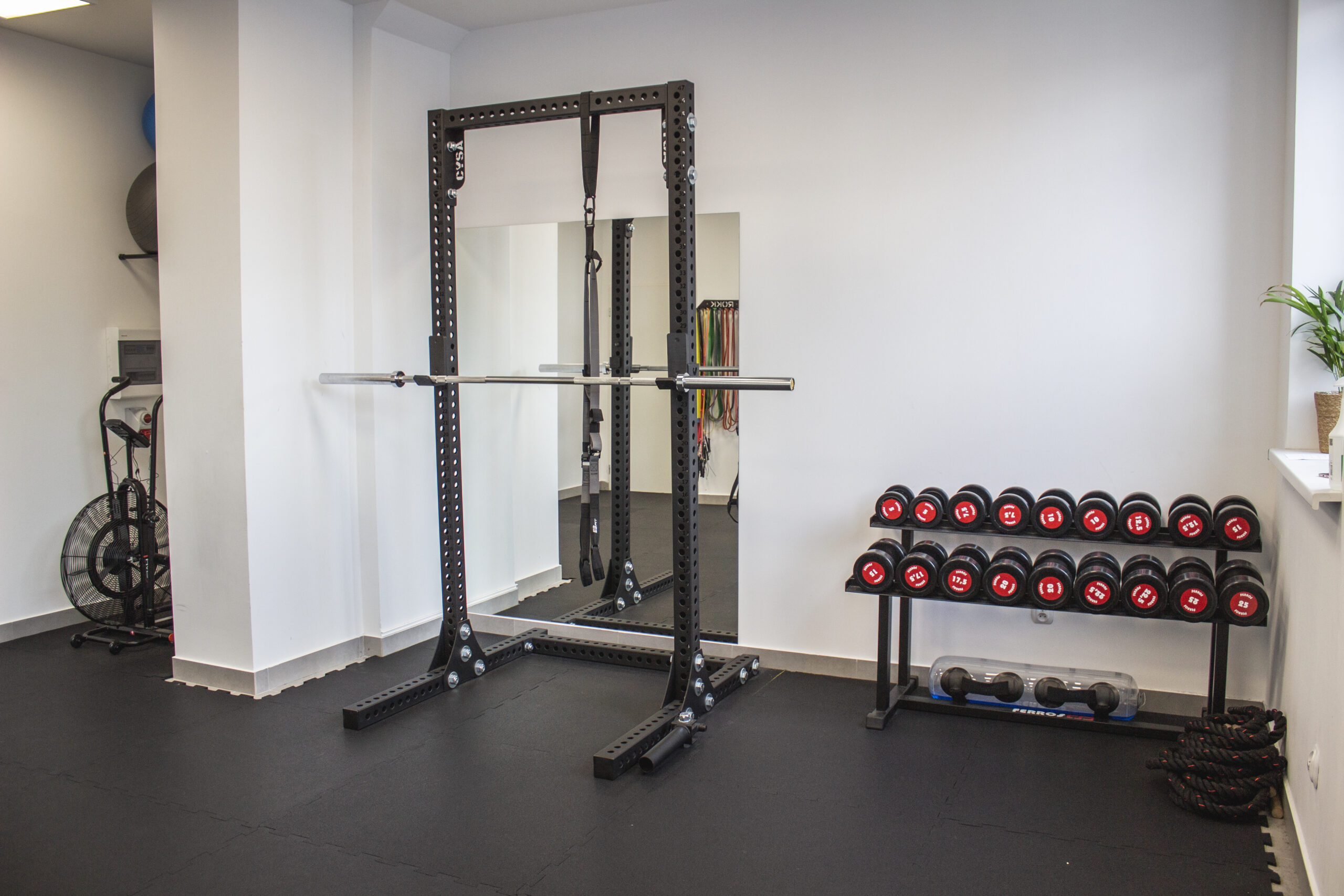 Prawie 100m2 powierzchni, szatnia oraz prywatna łazienka. Dookoła studio znajduje się duży darmowy parking dookoła budynku. Studio wyposażone w niezbędny sprzęt. Bramy treningowe z kilkoma stanowiskami do treningu, zestawy hantli, obciążeń, taśmy, piłki, piłki lekarskie, trx, skrzynie, maty i inne. W studio nie są wymagane dodatkowe karnety wstępu, karty partnerskie. Opłaty są wyłącznie za treningi. W studio panują kameralne warunki, nie ma osób trzecich, są tylko trenerzy i podopieczni.